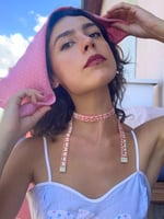Tape measure necklace Red & creamy