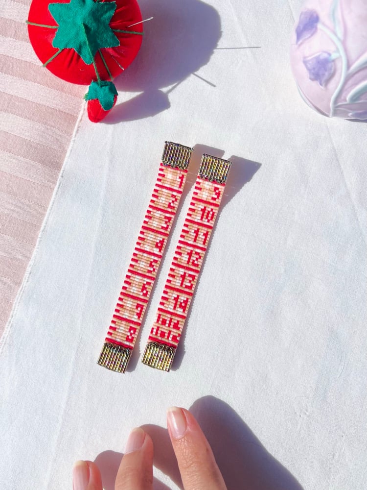 · TAPE MEASURE EARRINGS ~Vichy fuchsia.